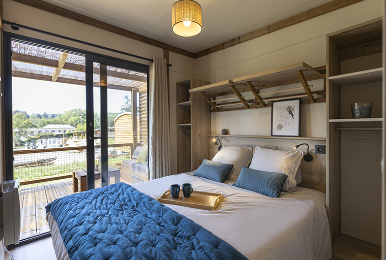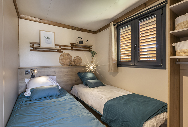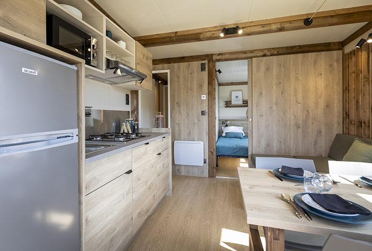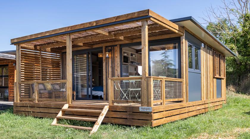 Grundmodellen af Mobilhome Moderne Mobilhome for optil 5 personer med køkken og udendørs terrasse